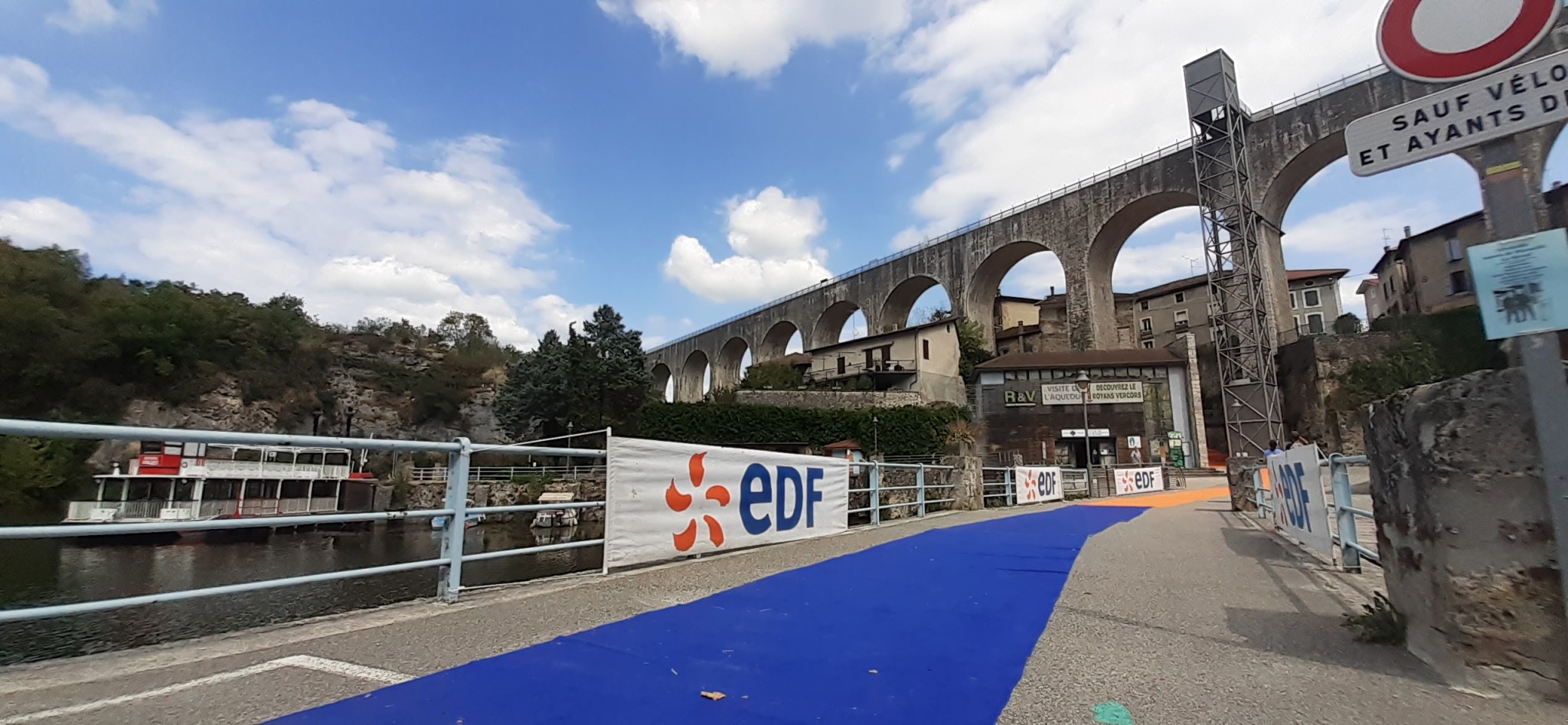 à pied, 4 tours, avec 8 passages sur le viaduc en mode trampoline c’était une foulée bondissante, puis un sentier et du bitume souvent à l’ombre